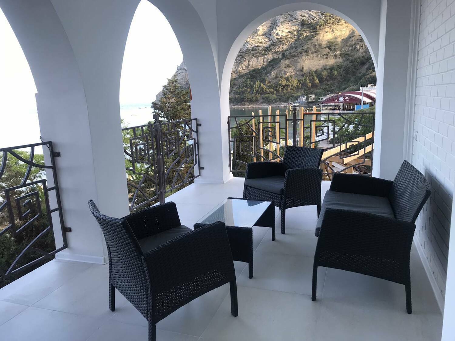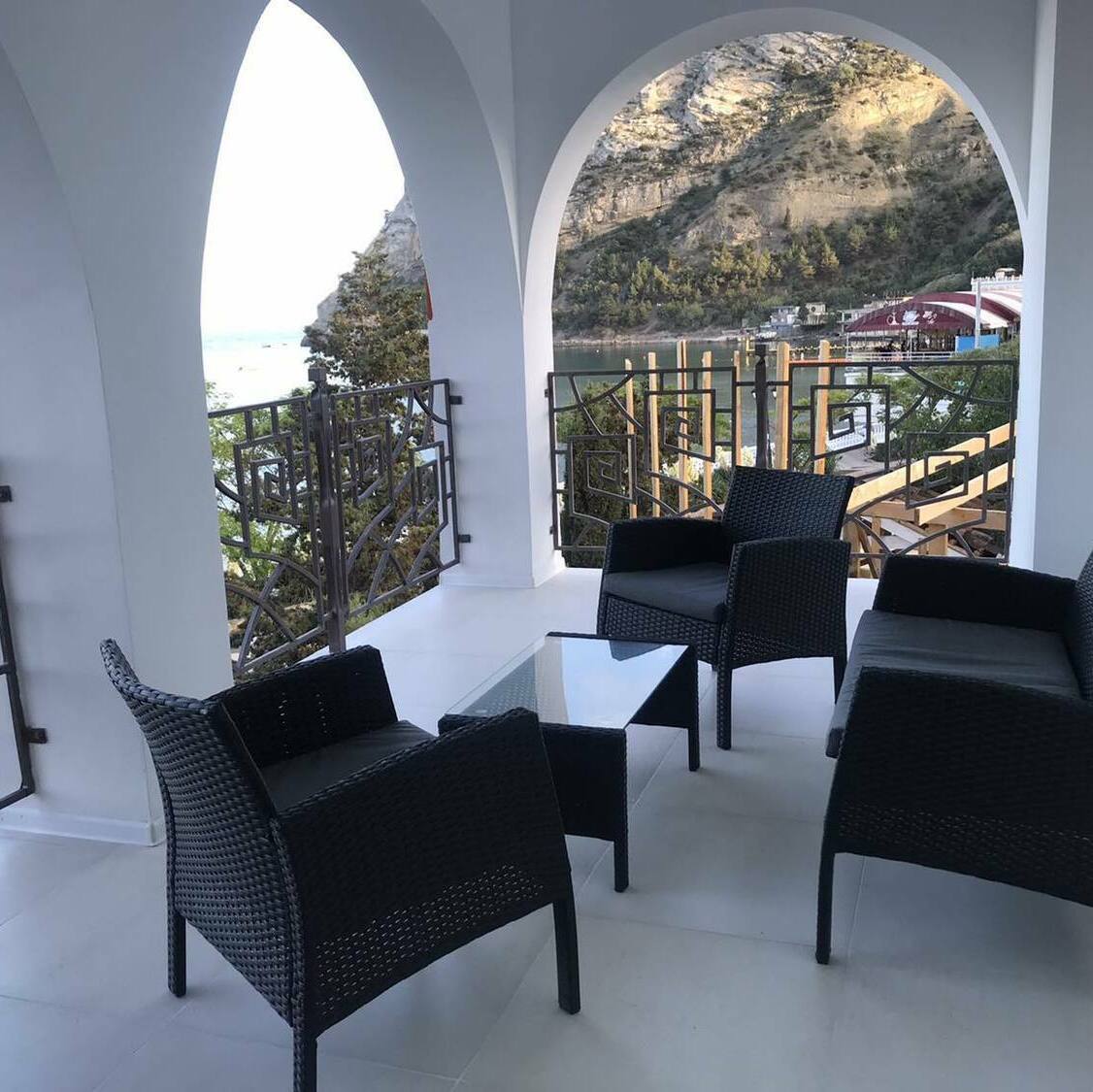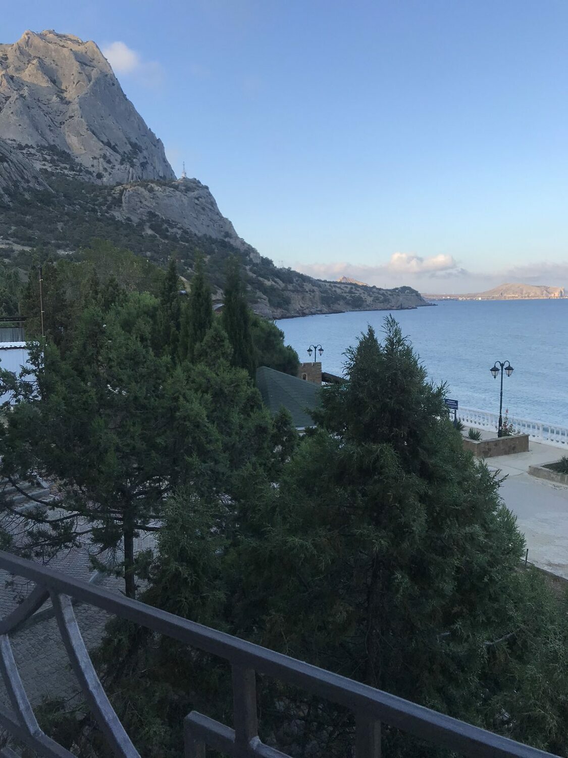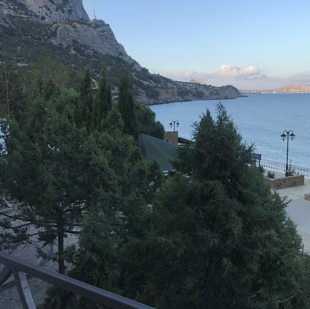 Современный просторный и уютный номер с потрясающим видом на море, горы и Зеленую бухту Нового Света. Большой балкон (14 кв.м.) с комфортабельными креслами и диваном.